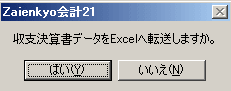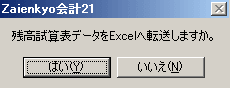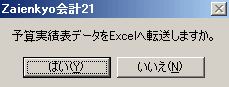 残高試算表の場合には左側のメッセージが、予算実績表の場合には右側のメッセージが現れますので、「はい(Y)」をクリックしてください。
