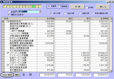 Excelが自動的に起動され、決算書のデータが転送されます。(支出の部から転送を始め、最後に収入の部を転送します。)